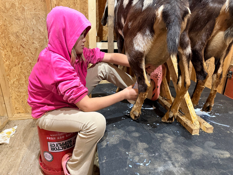 Our kids milk the goats, and us parents make the soaps. Every batch is handcrafted the traditional cold process way. Slow, intentional, and made with ingredients we trust on our own family’s skin.